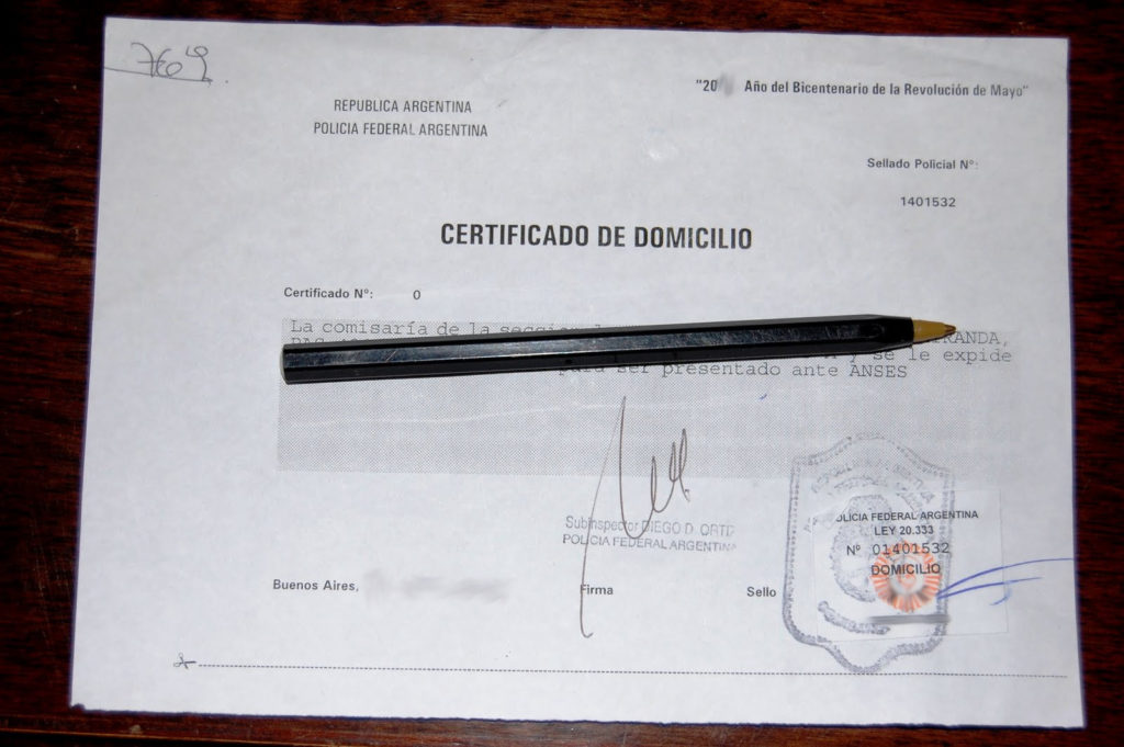 Para tener el certificado de domicilio, en Córdoba, se debe descargar en la página web de migraciones argentina, una “Declaración Jurada” por la que se debe pagar alrededor de $32 Ars, o conseguirla y pagarla en uno de los Rapipago de la ciudad.
